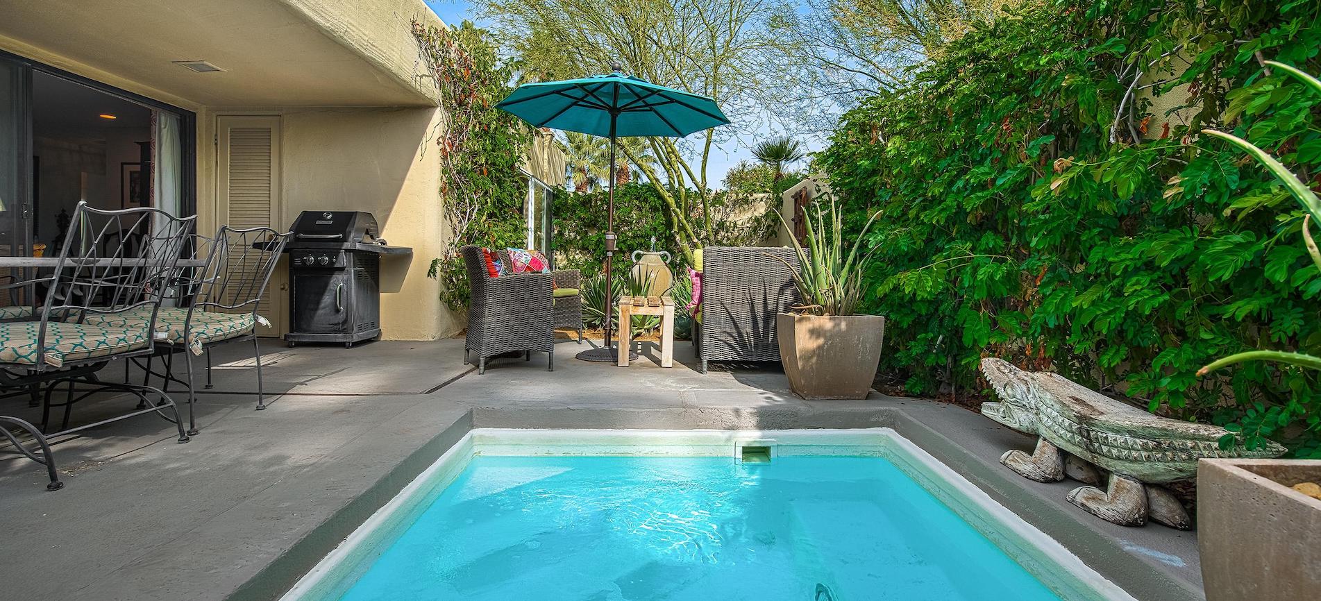 Welcome to your oasis in the heart of Palm Springs! Nestled within the Greenhouse community. This 2-bedroom, 2-bathroom condo offers resort-style living. Upon entering, you are greeted by an inviting living area adorned with abundant natural light, accentuating the chic interior. The well-appointed kitchen, featuring contemporary appliances and sleek cabinetry, opens seamlessly to the dining area, creating a perfect space for entertaining guests or enjoying intimate meals. Step through the sliding glass doors onto your expansive patio, a private retreat that beckons relaxation. The highlight of this outdoor sanctuary is the plunge pool, an ideal spot for cooling off under the warm Palm Springs sun. Whether you’re lounging with a book or entertaining friends, this patio offers a tranquil escape. The Greenhouse community itself is a haven for recreation, with two pools inviting you to take a refreshing dip or bask in the sun. Indulge in relaxation at the spa or enjoy friendly competition on the tennis court, expertly set up for pickleball enthusiasts. Convenience is key, and this condo’s proximity to downtown Palm Springs ensures that the city’s vibrant energy is just moments away. Explore an array of dining options, from gourmet restaurants to cozy coffee shops, and satisfy your shopping cravings with boutiques and stores nearby. Whether you’re seeking a full-time residence or a vacation retreat, this 2-bedroom, 2-bathroom condo at the Greenhouse in Palm Springs offers an unparalleled combination of style, comfort, and convenience. Embrace the desert lifestyle and make this exceptional property your own!
