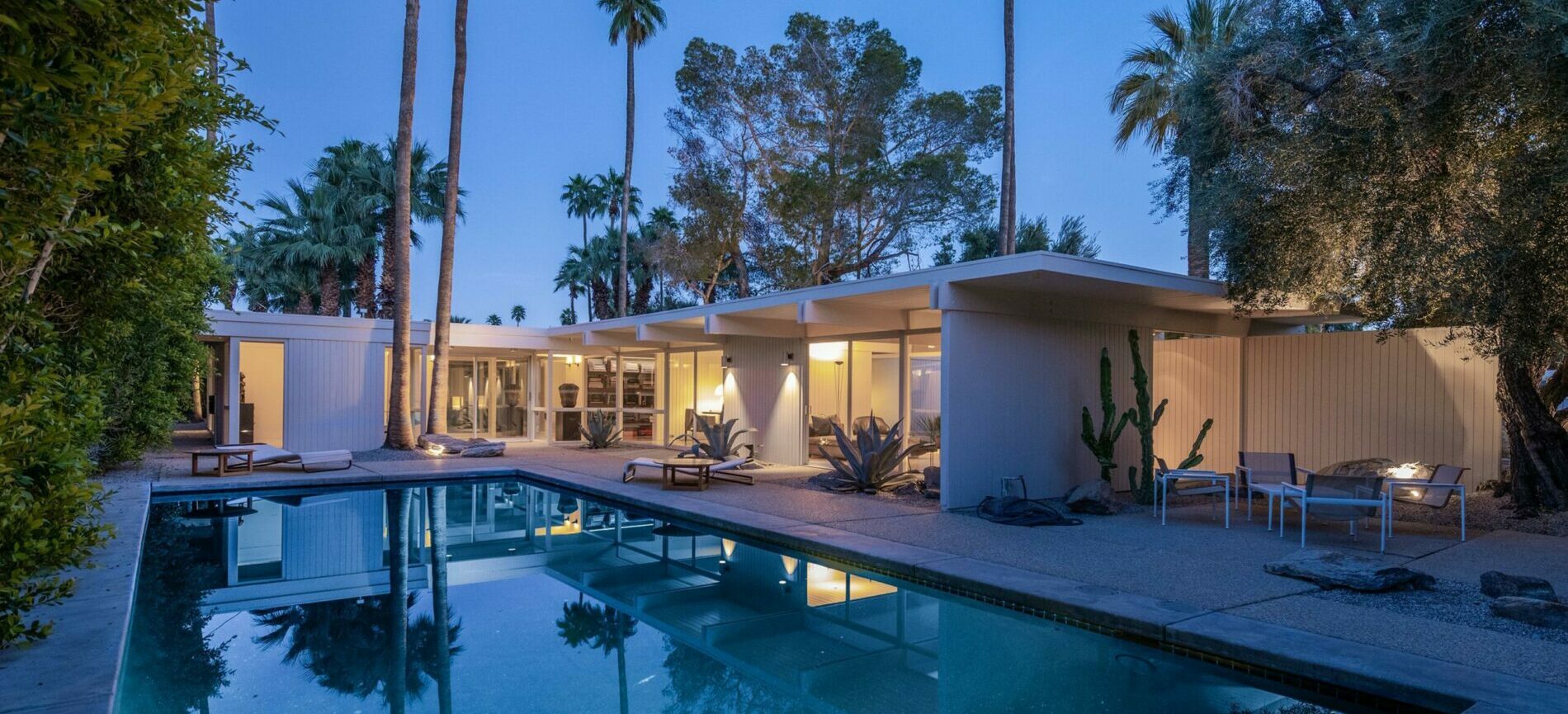 The Wexler Residence – a historical and architectural landmark in Movie Colony East. This class 1 historic property underwent a museum-quality restoration in three separate phases from 2007-2026. Built in 1955, the Wexler Residence served as Donald Wexler’s own home for nearly forty years. Tucked away on a private third-of-an-acre in Movie Colony East, the property carries the prestigious National Register of Historic Places designation and is a Palm Springs Class 1 Historic Resource, bringing substantial property tax savings through the Mills Act. While Wexler is legendary for his “machine-age” steel houses and the Palm Springs International Airport, he took a much softer, more organic approach with his own residence. Influenced by his time apprenticing for giants like Richard Neutra and William F. Cody, he opted for an all-wood post-and-beam system. This signature style created a flexible, open floor plan that could expand or contract as his family grew. The architecture effectively erases the boundary between indoors and out, with interior walls that seem to pierce through floor-to-ceiling glass, drawing the eye toward the desert landscape and the deep overhangs that keep the midday sun at bay.The home’s current steward has done a remarkable job of preserving its soul while bringing it into the 21st century. In a rare “full circle” moment, Donald Wexler himself collaborated with architect Lance O’Donnell and designer Darren Brown on a total remodel that earned the Palm Springs Modern Committee’s Residential Restoration of the Year Award. They managed to keep the original vertical fir siding and spun metal lighting while introducing sleek new terrazzo floors, marble slabs, and high-end European fixtures in the kitchen and baths. Every detail was considered, right down to the “Wexler White” paint that unifies the entire structure. Beyond the aesthetics, the home is fully equipped for modern life with a new roof, updated HVAC, and a solar system. The grounds are a complete retreat, entirely hidden from the street by a tall perimeter hedge. Once you’re inside the gates, the space opens up to a landscape of ancient boulders and native plants, likely the work of Antone Dalu, who worked on most of Wexler’s 1950s projects. A striking black-bottom pool and detached spa sit in the center of it all, offering clear views of the San Jacinto mountains and a sense of total seclusion just blocks from Ruth Hardy Park.