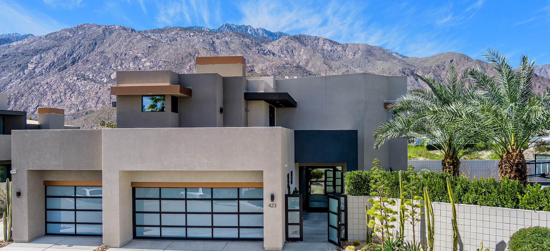 Expect the unexpected in this newer construction property in Central Palm Springs built in 2017 on Fee Simple (you own) land. This one-of-a-kind home features a lap pool and separate cold plunge pool, dry sauna, sport court and one of the best backyards you’ll see. With 5 bedrooms and 5 bathrooms, a detached guest house, a 2nd story balcony with uninterrupted panoramic mountain views and even owned solar, this modern property comes with everything you could ever wish for in your desert hideaway. The oversized primary suite has a large walk in closet with private walk around terrace. The spa bath with soaking tub is centered below the gas fireplace and separate steam shower. Office/flex space upstairs in addition to full guest suite with private terrace looking to the beautiful San Jacinto mountains. The main level has a open air living and dining space with fireplace, wet bar and retractable doors leading to the incredible outdoor areas and additional large guest suite. Gourmet custom kitchen with Thermador appliance suite and great interactive space to have a bite or work on your latest project. Two bedroom guest house with bath is anchored in the corner of the property. Three car garage with built in storage systems and plug for your vehicle. Lutron HomeWorks Automation system, extensive security/camera system, misting system just to name a few.