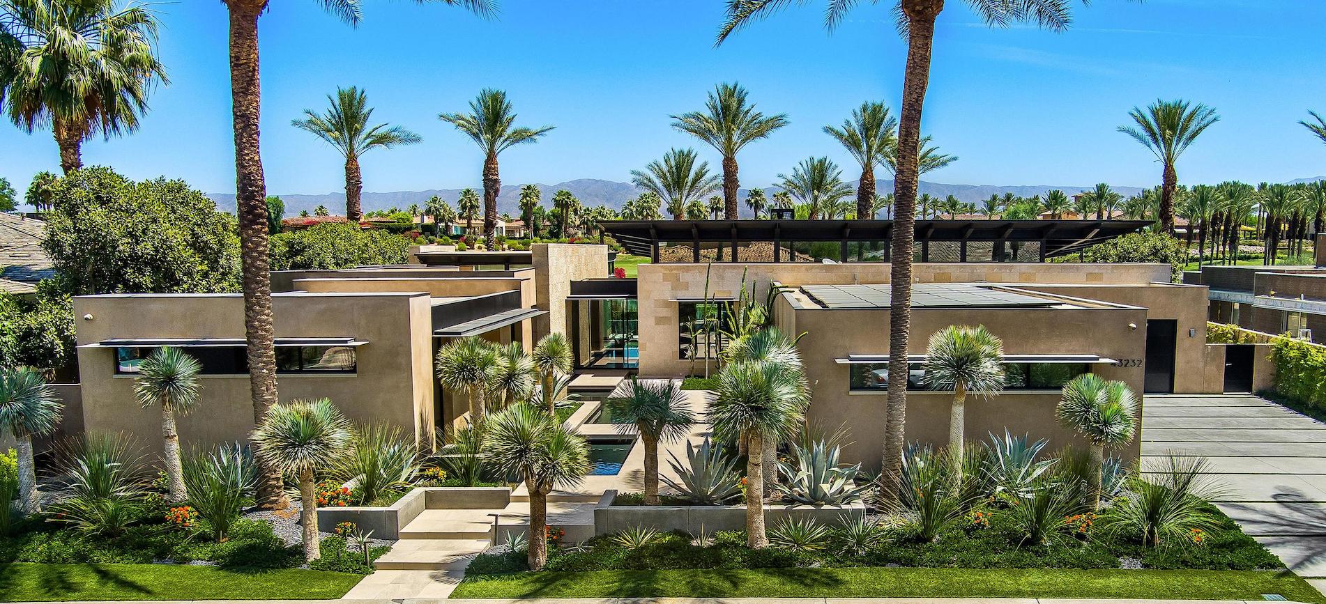Quite simply one of the best offerings ever at world class Toscana County Club in beautiful Indian Wells, CA. This published architectural home features the finest materials and superb craftmanship creating an idyllic setting blending the indoor and outdoor. A series of “lily pad” concrete walks lead you to the main entrance of this inviting home. Transom windows allow more light to flood from all directions of the property which was meticulously studied as part of the design of the property. Walls of glass disappear through much of the home blending the warm inviting interiors to the exterior spaces. Mixed use of woods, stone and glass with custom steel work throughout the property and structural as well. Multiple lounging areas and two conversation firepit areas as well as outdoor dining pavilion with built in heaters and misting system are enhanced by the infinity edge pool and zero scape spa. The main living spaces are open with a lounge area opening to the reflecting pools and sounds of perfectly pitched waterfalls. Two offices plus a cozy den for viewing your programs and additional bedroom suite in the main house. A two bedroom, two bath with living room attached guest house offers privacy for all. The primary suite and spa bath features double separate closets and water closets as well with heated flooring and outdoor shower with a soaking tub. Simply the best millwork and finishes we have seen in this incredible offering with owned solar system, oversized four car garage with car chargers and vacuum system plus two cart golf cart garage totally roughly 1600 square feet (in addition to the 5762 square feet of living space and almost half acre lot). This custom home is located in one of the top clubs in the Coachella Valley featuring exceptional amenities including, 2 Jack Nicklaus Signature Golf Courses, 5-Star Spa, State-of-the-Art Fitness Center, Pool, Bocce, Tennis, Pickle Ball and multiple dining venues and two dog parks – something for everyone! Simply the best of the best.