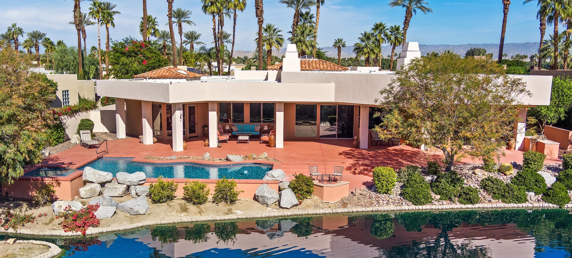 Wake each day to sweeping mountain panoramas and the serene spectacle of swans gliding across rare lake front vistas. Designed for grand-scale entertaining, the residence unfolds with a formal living room anchored by a fireplace, an expansive great room and a refined wet bar ideal for hosting with ease. The chef’s kitchen is highly functional, featuring Sub-Zero refrigeration, double Dacor ovens, dual dishwashers and dual sinks well suited for everything from intimate dinners to large gatherings. The primary retreat is a true sanctuary, offering a private sitting room, two walk-in closets, an in-home sauna and a recently reimagined spa bath with a jetted soaking tub and dual-entry shower. Outdoors, the lakefront setting becomes a natural extension of the living space, complete with a pool and spa, built-in barbecue and inviting fire pit perfect for sunset evenings by the water. Guest suites are thoughtfully appointed, while high ceilings and skylights fill the interiors with natural light. Additional amenities include a three-car garage with custom built-ins, four air-conditioning units and an oversized laundry room. Set on a premier waterfront lot, this exceptional residence offers a refined balance of comfort, functionality and elevated desert living.