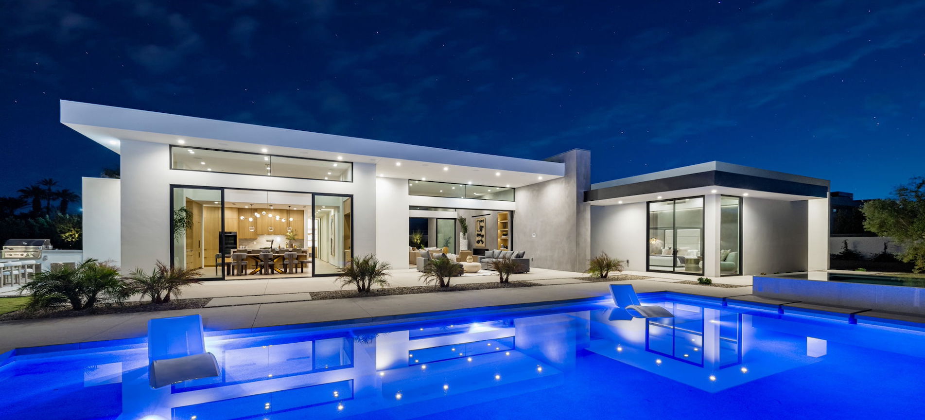 One Wren Court in Rancho Mirage is a stunning, newly constructed contemporary estate set on a private 1.01-acre lot. This architectural home is designed to elevate luxury living with an elegant, open layout and seamless indoor-outdoor flow. Inside, the main residence offers three spacious bedrooms, highlighted by an expansive primary suite that boasts a spa-like bathroom with a soaking tub, dual showers (including a unique outdoor shower), and an oversized walk-in closet. Two additional guest suites, each with their own en-suite bathrooms, are complemented by a private shared sitting room, creating an ideal retreat for family or friends. A versatile flex room awaits your customization, perfect as a home theater, office, or personal gym. The heart of this home is its beautiful kitchen, featuring top-of-the-line Dacor appliances, two dishwashers, a double oven, microwave, and a substantial refrigerator/freezer. A butler’s kitchen adds even more functionality for seamless entertaining. Adjacent to the dining area is a stylish wet bar, complete with a wine refrigerator. The open living area shines with a 2-sided glass atrium and a vast glass pocket door, inviting in natural light and connecting effortlessly to the outdoors. Outside, your private oasis awaits. The detached one-bedroom guest house includes a cozy living area, ensuring guests enjoy comfort and privacy. An expansive saltwater pool and infinity edge spa, a built-in barbecue, and a large fire pit create an ideal setting for relaxation and entertaining under the desert sky. Additional highlights include a Control4 home automation system, a four-car air-conditioned garage, owned solar power with backup battery, and a private gated entry. Experience Rancho Mirage’s finest luxury living at 1 Wren Court, where modern sophistication meets desert tranquility.